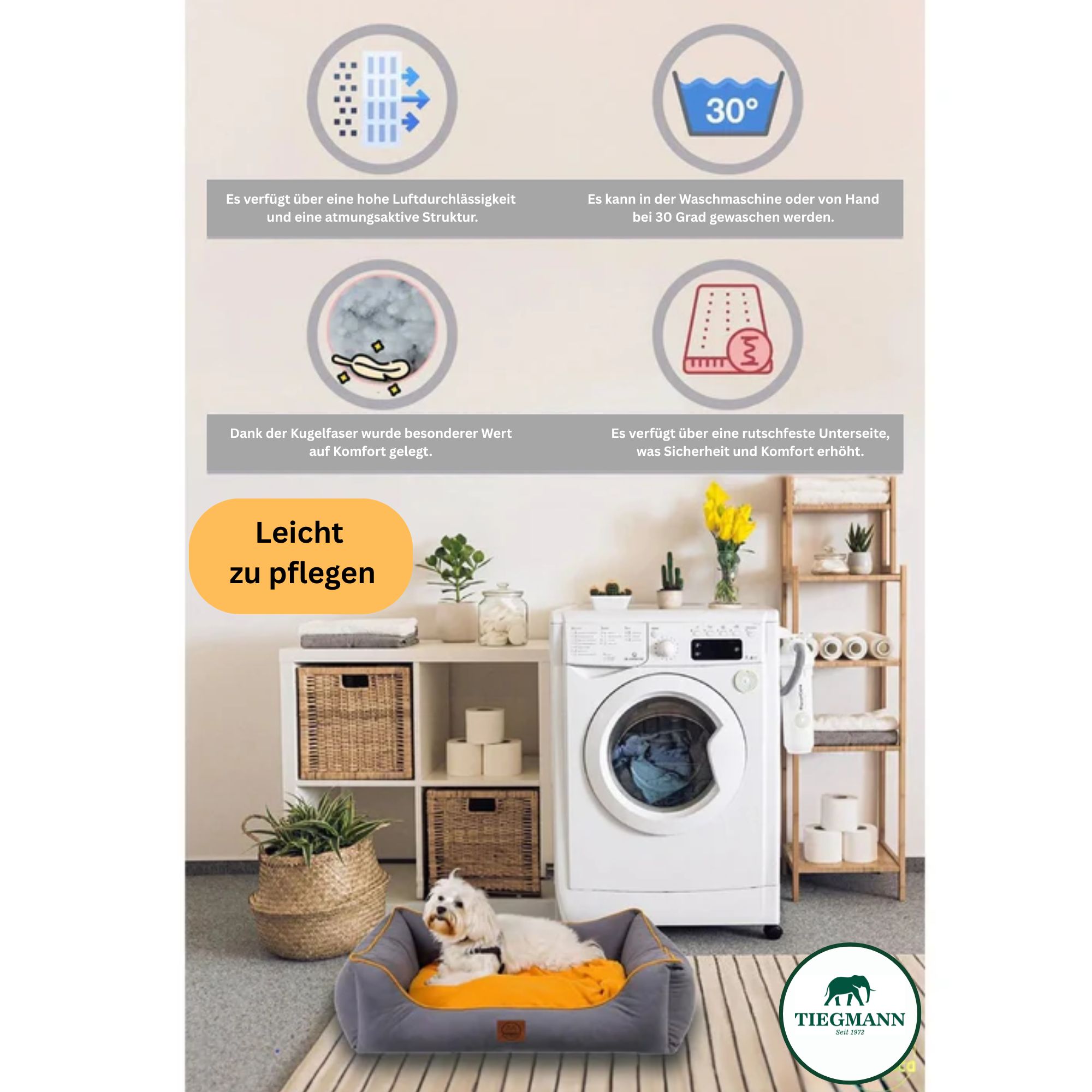 Waschbar bei 30 °C. Nach dem Waschen einfach im Trockner trocknen. Unsere Matratzen nehmen nach dem Trocknen problemlos wieder ihre ursprüngliche Form an.